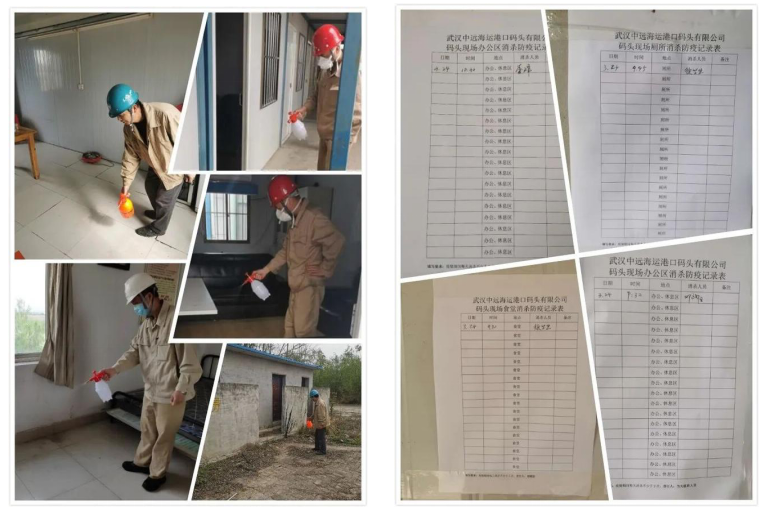 码头现场是疫情防控的第一线,也是逐步复工的最前沿。公司在码头现场加强现场治安巡查,建立外来人员进出现场台账制度:对于因公拜访人员,登记详细信息,测温正常后放行;对于闲杂人员,一律予以劝返。除了对来访人员加强管理,码头现场对包括保产人员、司机在内的员工继续实行严格管控,每日测量体温不少于2次,发现异常及时上报,并建立明细台账。为了应对可能出现的突发状况,码头现场还将两个房间改造为符合条件的隔离室,并张贴明细标识。办公区域、食堂、卫生间是人员密集场所,也是复工后消杀工作重点区域。码头现场指定专人每日开展多次消杀工作,建立区域消杀记录台账。
